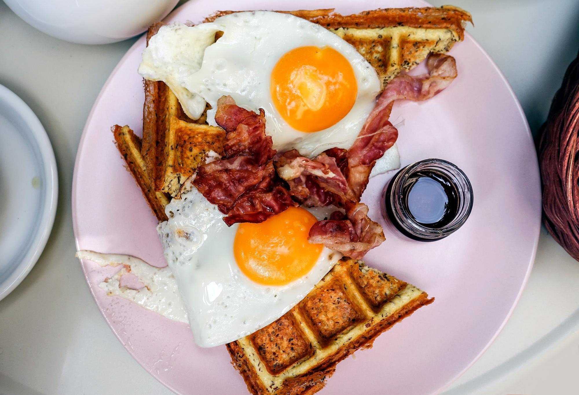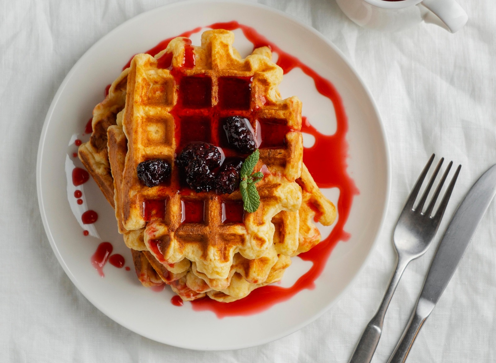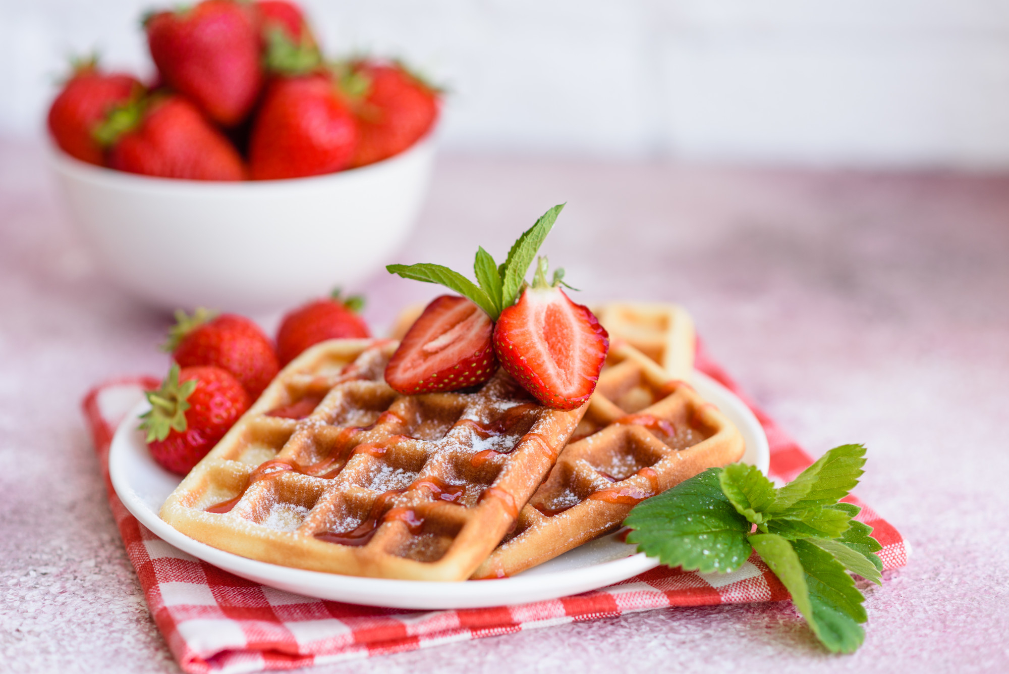 Homemade waffle with strawberry butter and maple syrup add seasonal berries + $2 sausage/vegan sausage + $3