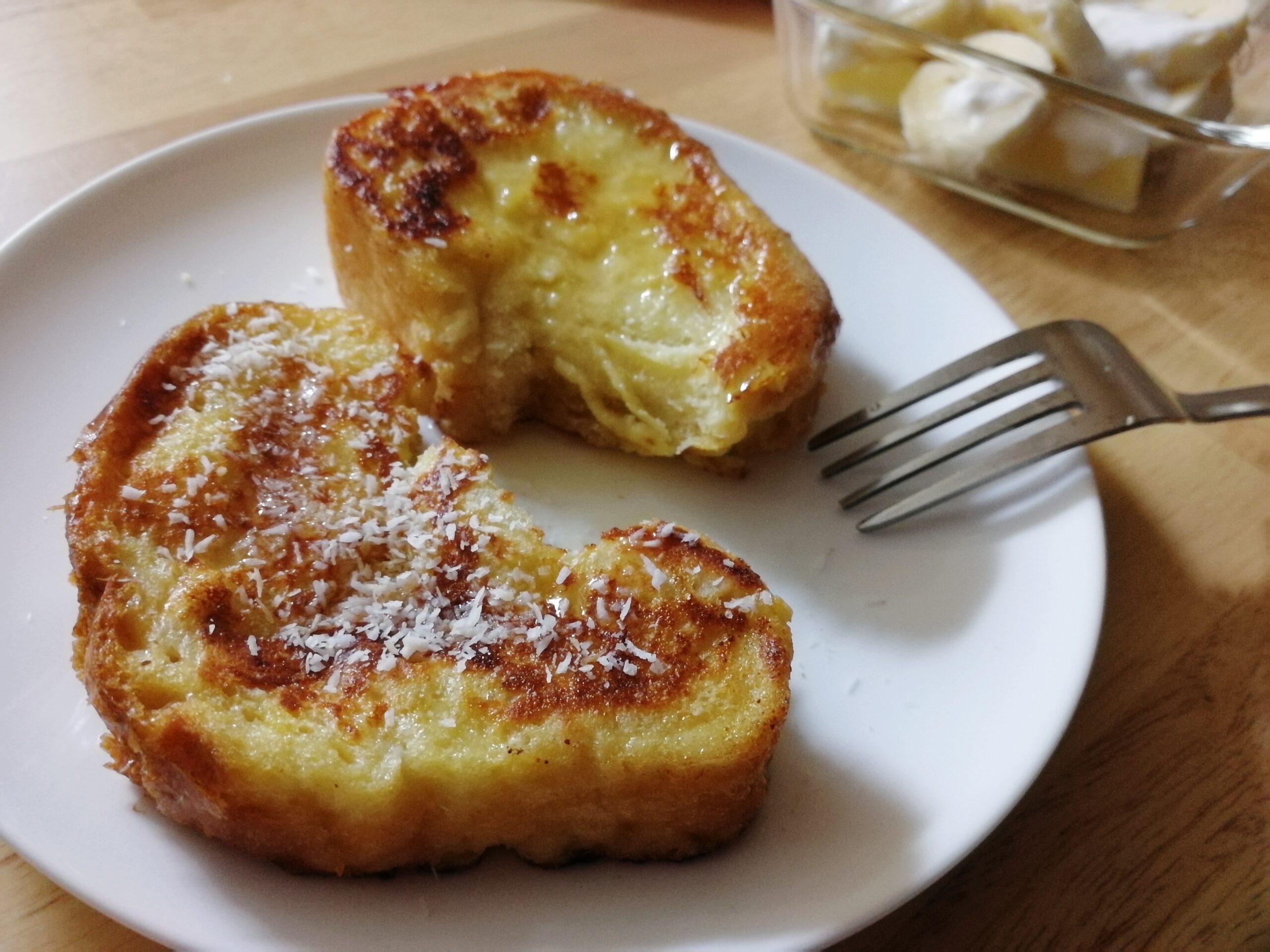 Creamy Custard Sliced brioche bread with strawberry butter and powder sugar